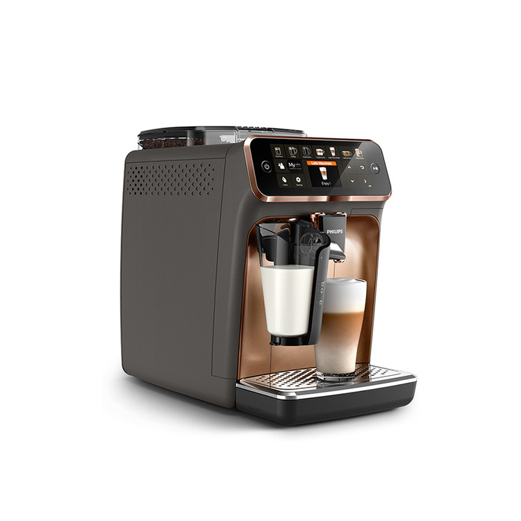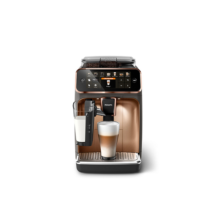 اسپرسوساز تمام اتوماتیک فیلیپس EP5144/72 با فشار بخار 15 بار و توان 1500 وات با کنترل پنل لمسی میتونه آب جوش، اسپرسو، کافه لاته، موکا، کاپوچینو، لانگو، امریکانو، شیر گرم، فلت وایت و … رو برای شما آماده کنه . این اسپرسو ساز دارای کنترل پنل لمسی ساده و کاریردیه. نوشیدنی معروف بر پایه اسپرسو، مستقیما از طریق منوی دستگاه قابل سرو هست.